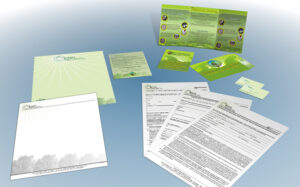 Materiais gráficos desenvolvidos para fortalecer a comunicação das marcas.